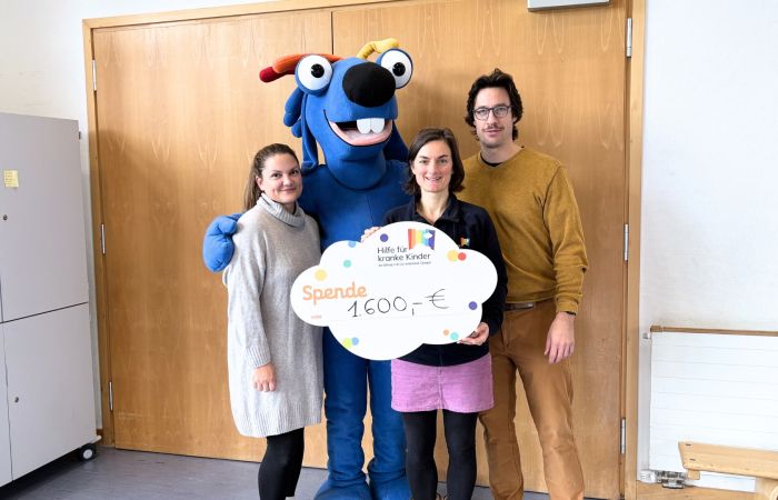 Julia Dusil (Elternbeirätin) und Julian Konzmann (Lehrer) haben die Spende an Sandra Hönle von HILFE FÜR KRANKE KINDER übergeben. Dabei haben die Grundschüler auch Besuch vom Kinderklinik-Maskottchen JoJo bekommen. Wir bedanken uns bei allen Schülern, Geschwisterkindern und Organisatoren für die tolle Spende.